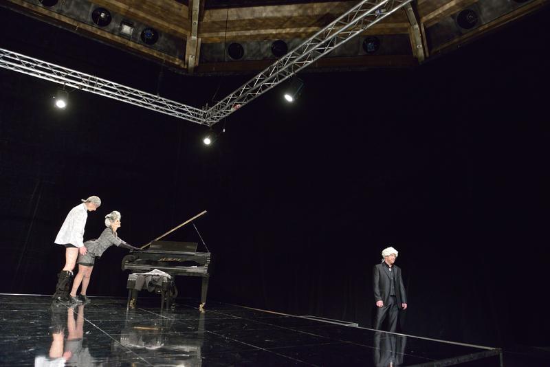 Podobně jako u režisérovy zatím nejlepší a mezinárodními úspěchy oceněné inscenace Ostrovského Výnosného místa (jeho absolventská práce na VŠMU, premiéra 2. dubna 2012 v Divadle Lab, režisér za ni získal hlavní cenu na letošním festivalu divadelních škol Setkání/Encounter v Brně, psali jsme o ní na i-DN: Brněnská setkávání (No. 2) i v DN: Setkávání pokrevních bratrů), tak i v jeho nitranské režii pozorujeme v podstatě tři východiska. Přesně vedenou režisérovu interpretaci, do detailů propracované herectví, charakterizované nadhledem, a minimalistickou scénografii, jíž dominuje jenom hudební nástroj – zmíněný klavír.